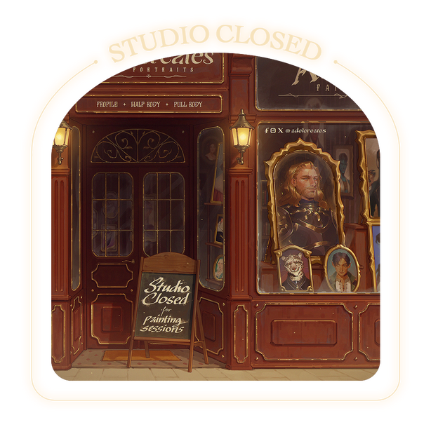 OPENING | I open commissions on a scheduled date and time. For more information on opening schedule and available slots, see Studio Status on home page.
